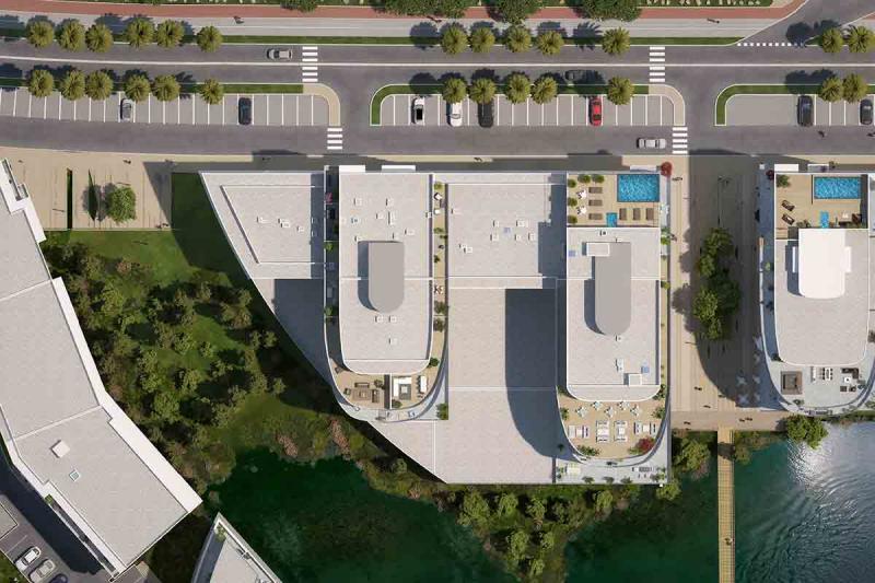 Bleu Horizon, dans la parfaite continuité de style architectural de Port Alizés, est une résidence placée sous le signe de l'eau. Ses lignes fluides, ses terrasses en courbes ondulantes, tout en transparence, sont inspirées du mouvement des vagues, des jeux de lumière à la surface de la mer.
