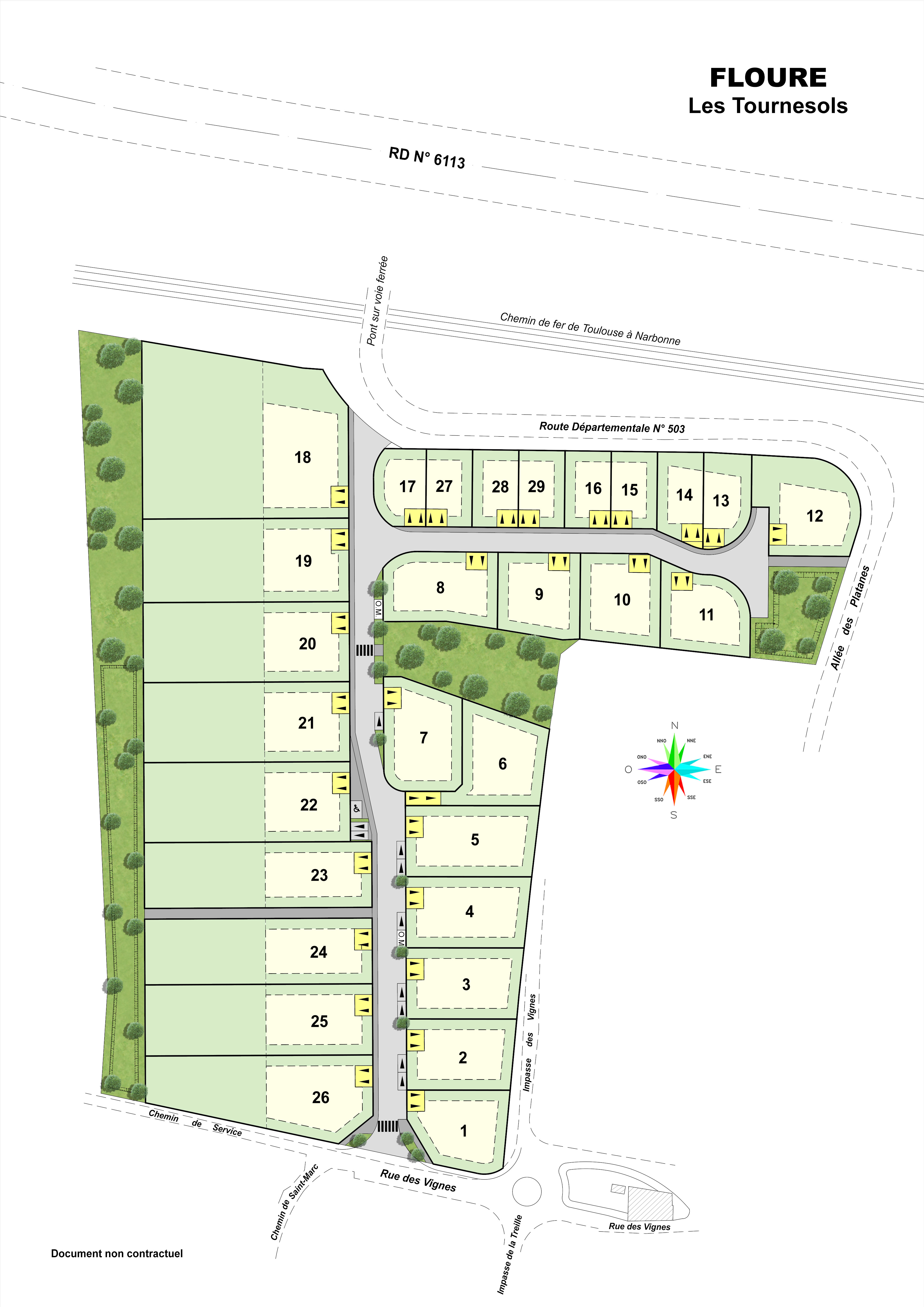 Terrains plats avec libre choix du constructeur, grandes surfaces disponibles.