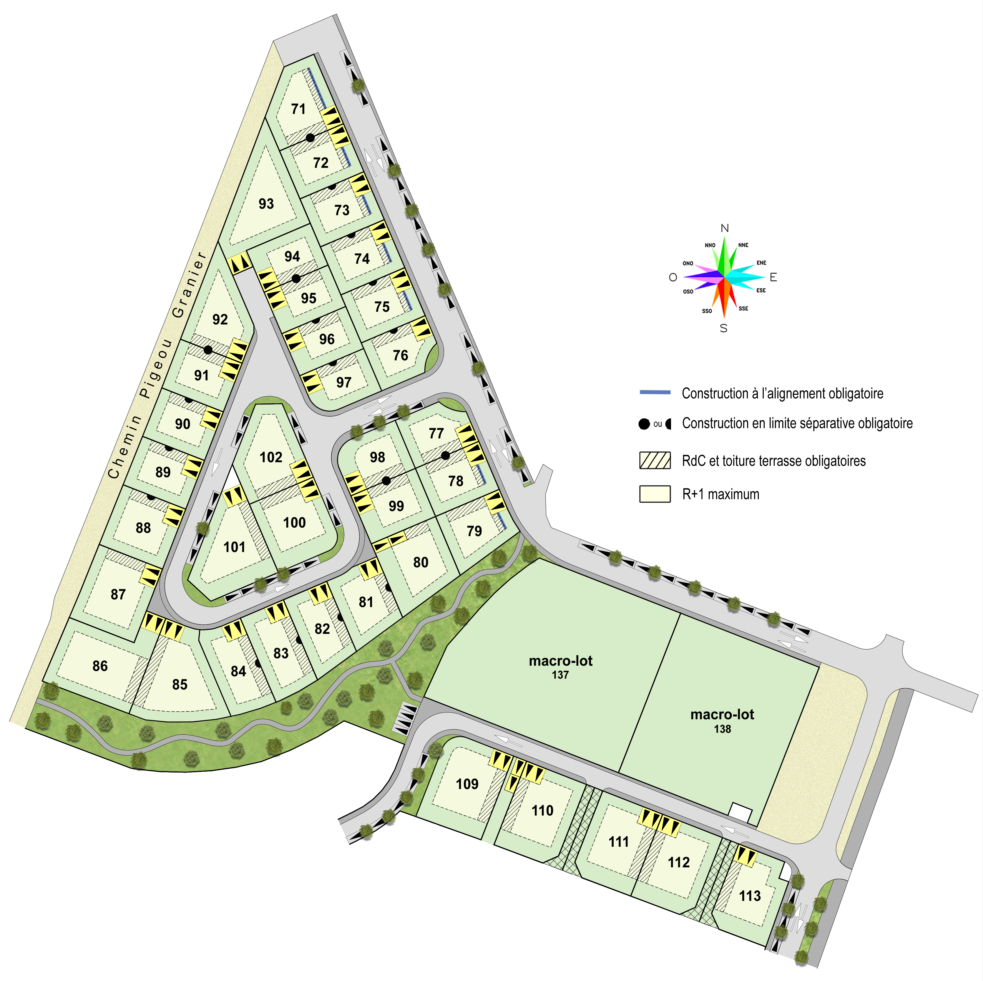 Nous vous présenterons des lots à l'exposition optimisée tel que le lot d'angle n°100 à 421 m² au prix de 139 000 €, idéal pour sa résidence principale.